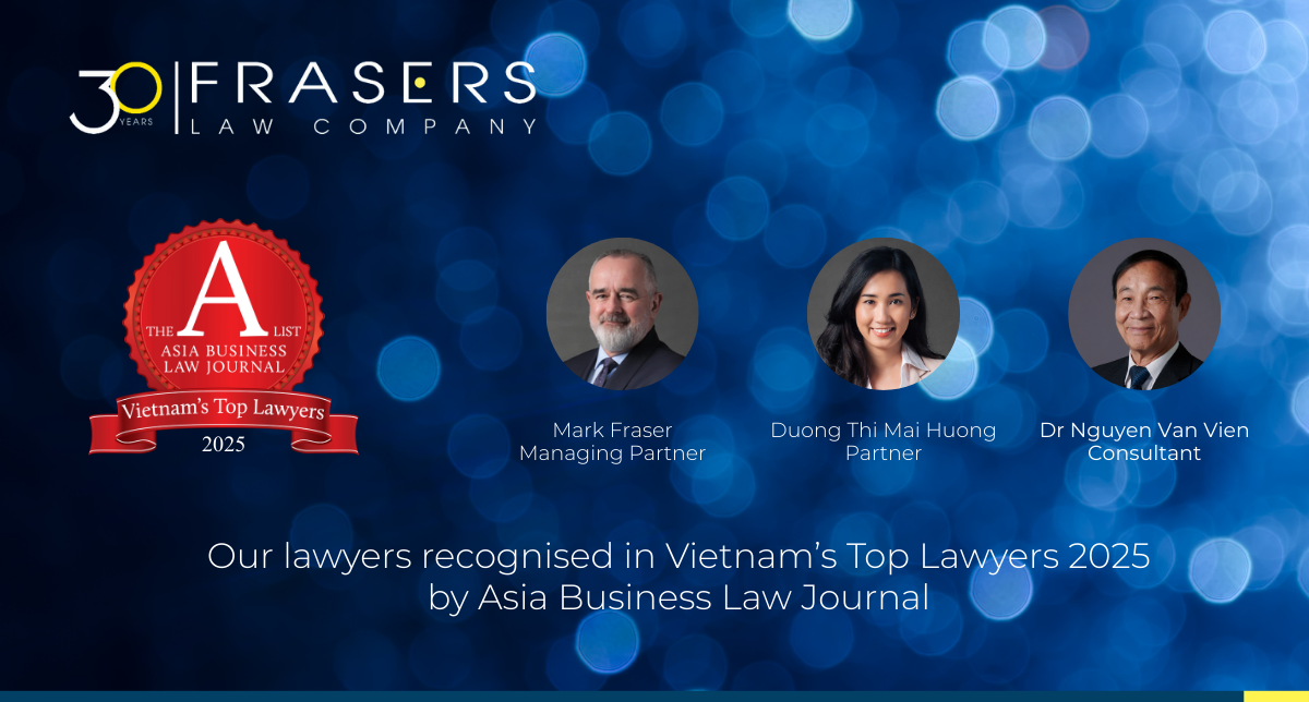 Frasers Law Company is pleased to announce that our lawyers have been recognised in the Vietnam’s Top Lawyers 2025 by Asia Business Law Journal, a definitive “A-List” of the Vietnam's legal profession.