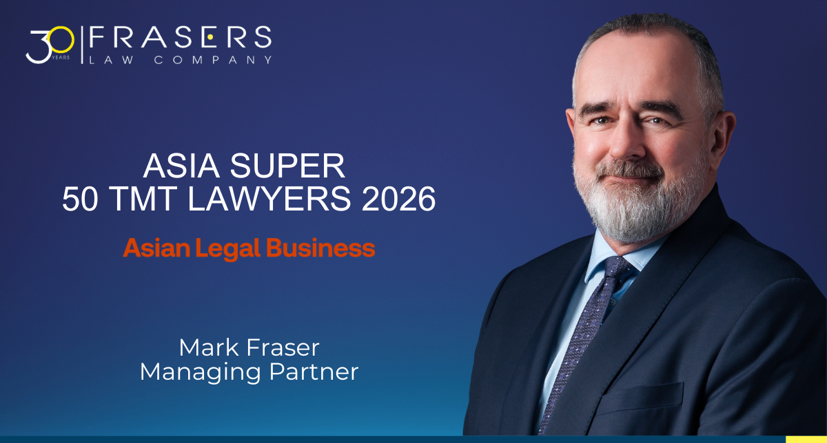 Chúng tôi hân hạnh chia sẻ rằng ông Mark Fraser, Luật Sư Điều Hành của Frasers, đã tiếp tục được vinh danh trong danh sách Asia’s Super 50 TMT Lawyers năm 2026 bởi Asian Legal Business.